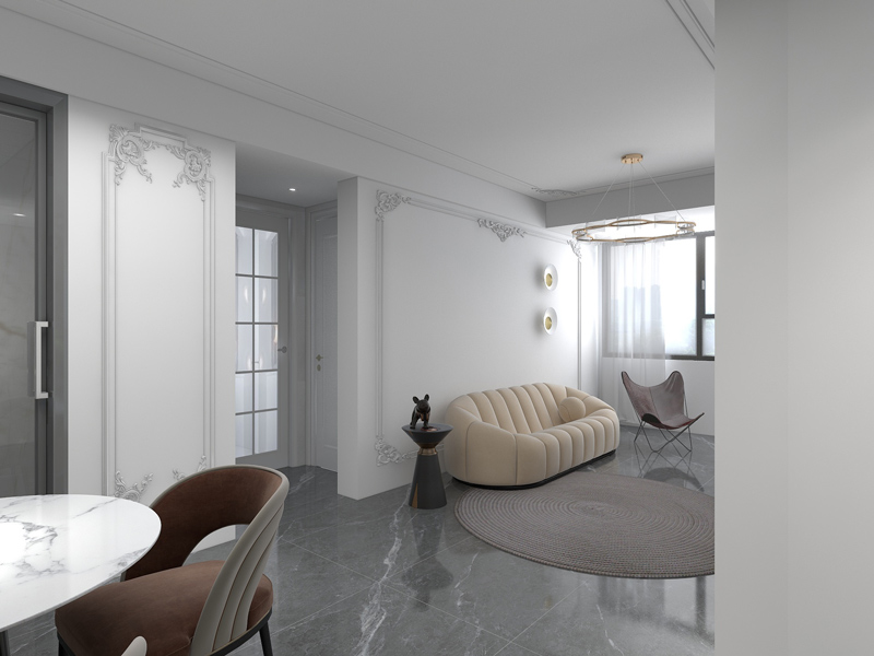 本案例风格定位于现代简约风,整体空间通过软装家具的比例缩小,让视觉呈现更宽敞通透,打造实用的生活空间。