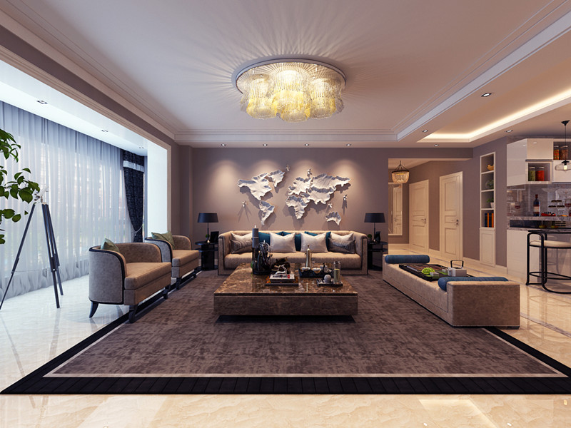 稳重的中性色以简洁的线条进勾勒,灯光带来的柔和色调中和了空间内过于强硬的气息,让客厅充满温馨与时尚之美。