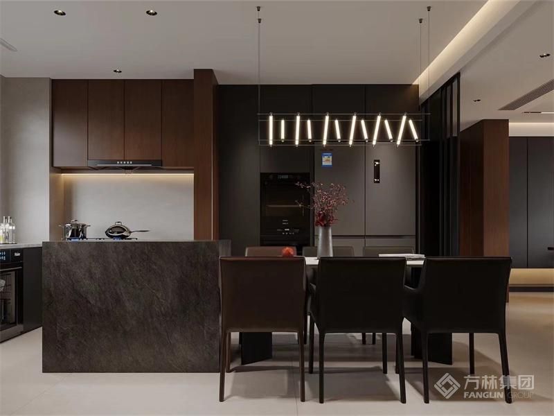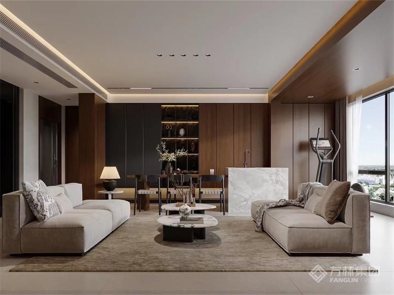 本案米棕、深灰等中性主调交织,利落线条勾勒空间轮廓。大理石的雅致、木质的温润与金属细节碰撞,在客厅社交休憩、餐厨家庭互动等场景中,功能与美学共生,以简约大气的布局、时尚细腻的材质,打造出契合意式精致生活方式的雅致居家空间。